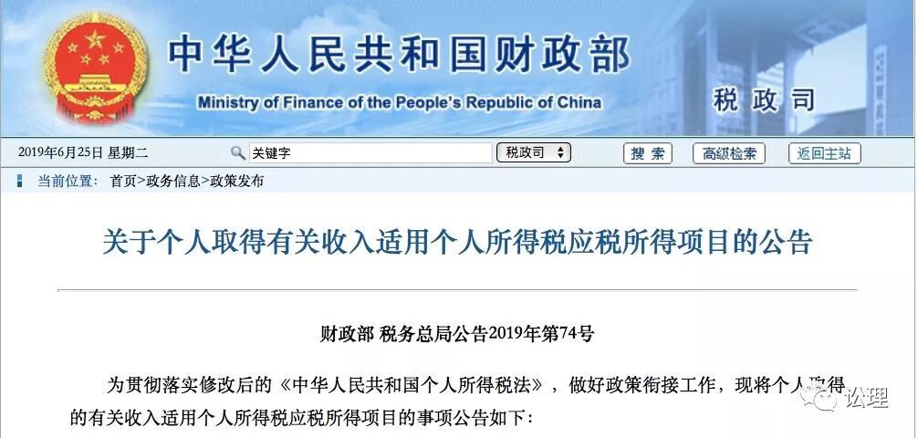 6月25日,财政部、税务总局联合印发《关于个人取得有关收入适用个人所得税应税所得项目的公告》(以下简称“公告”)。